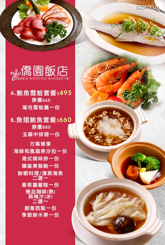 【台中僑園大飯店】鮑魚、雪蛤、魚翅等,海中珍饈的頂級套餐,讓您體驗激鮮誘人的高級海味!主廚精心烹調、嚴選食材,熱愛海鮮的饕客們絕不可錯過!